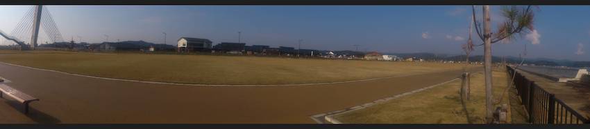 左側に見えているのが噂の橋です.正面からやや左側の奥の方に新しい道の駅が見えており,併設されている公園から撮った写真です.かなり広い公園で幅が1キロ程度はあるんではないかと思います.
